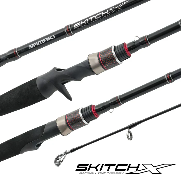 Introducing the Samaki Skitch-X — where style meets performance. Engineered for Australian waters and optimized for lure fishing, this rod boasts a striking Red/Black colour theme and Premium Fuji Concept O guides for superior casting. The Deluxe Cushioned Reel Seat and X-Weave Power Blank construction promise comfort and durability. Complete with custom carbon locking rings. Elevate your game with the Skitch-X.
